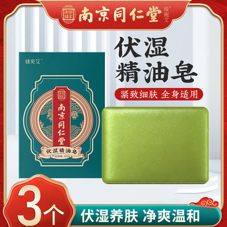 南京同仁堂精油皂艾草洁面沐浴伏湿皂100g*3个